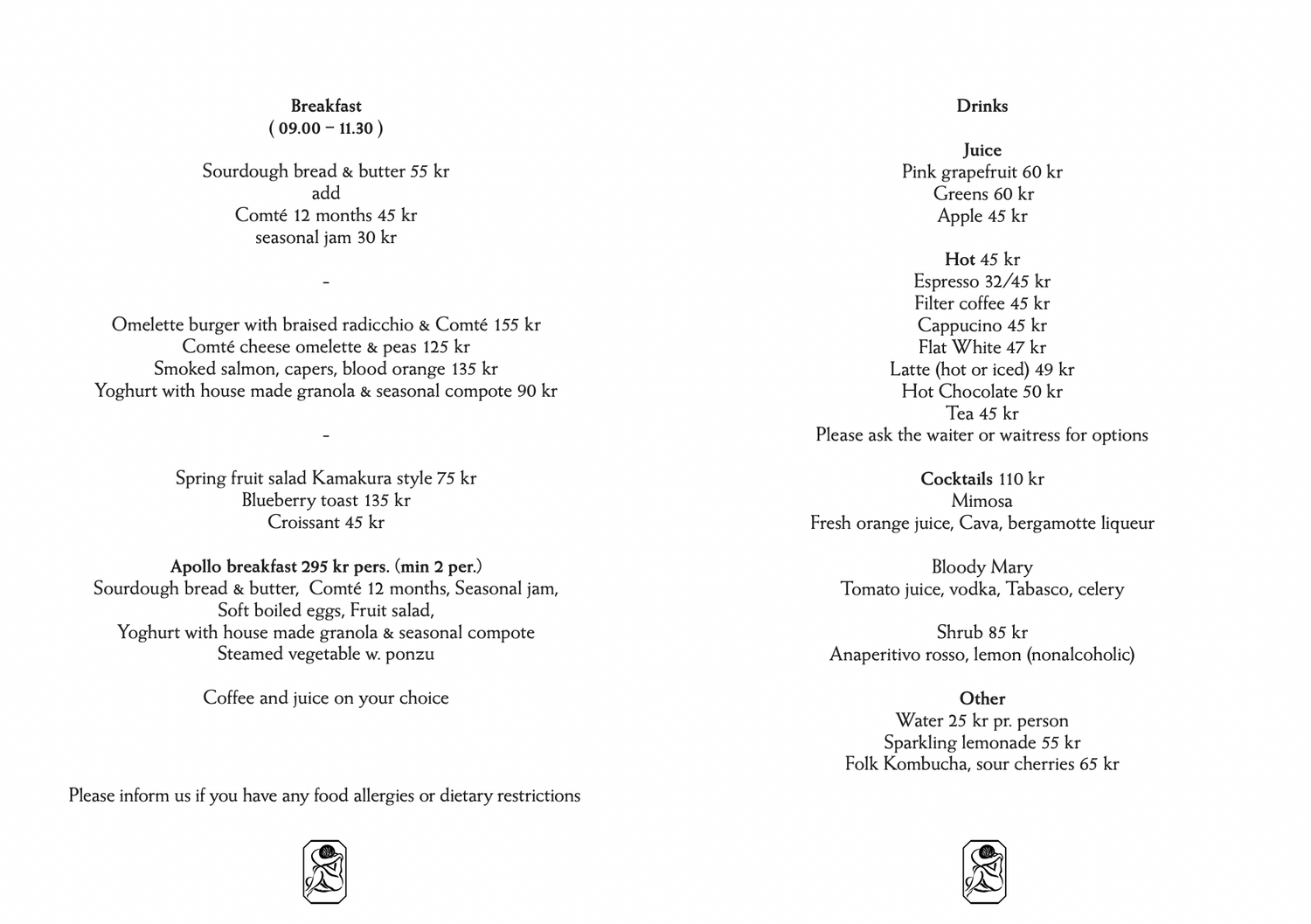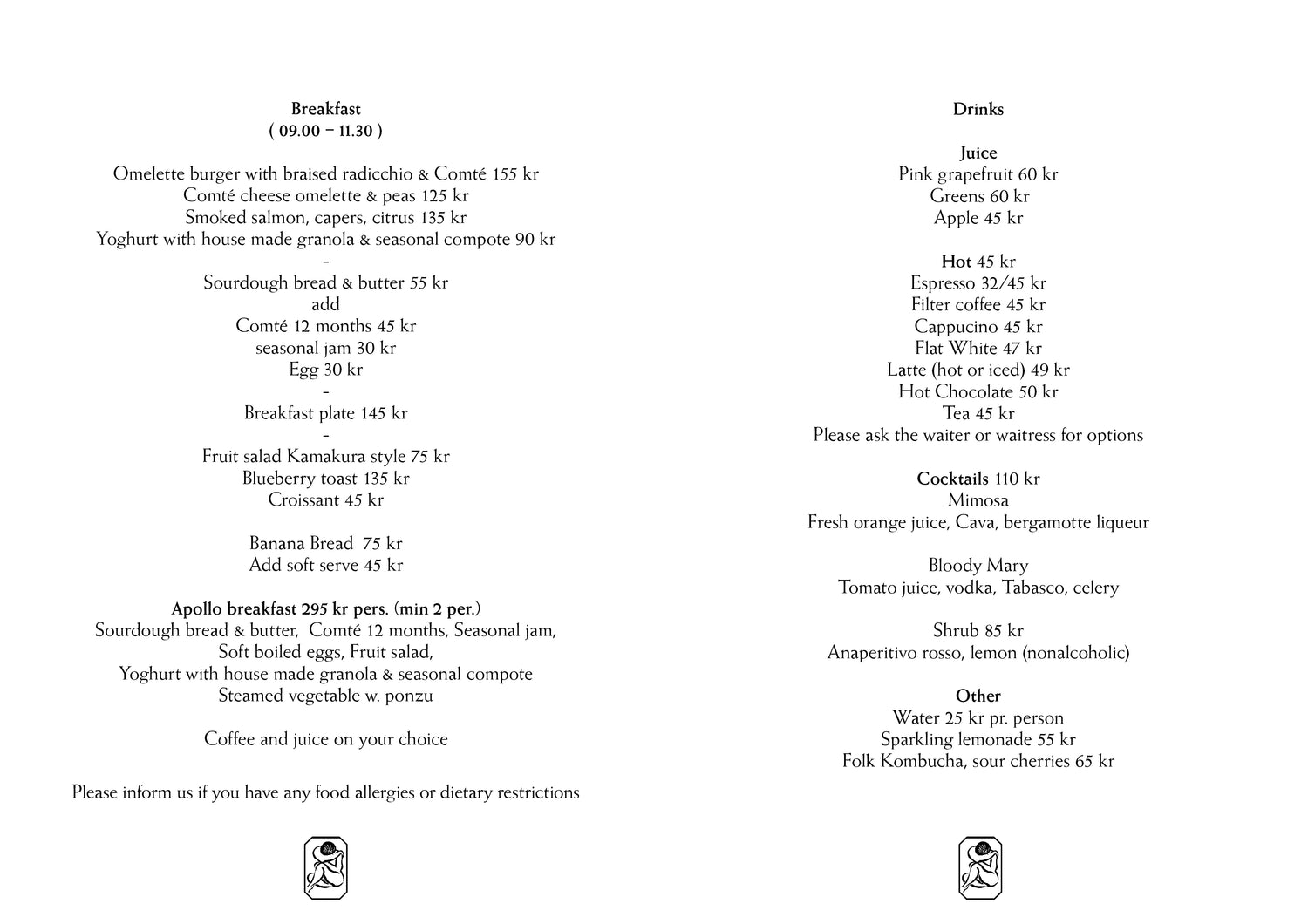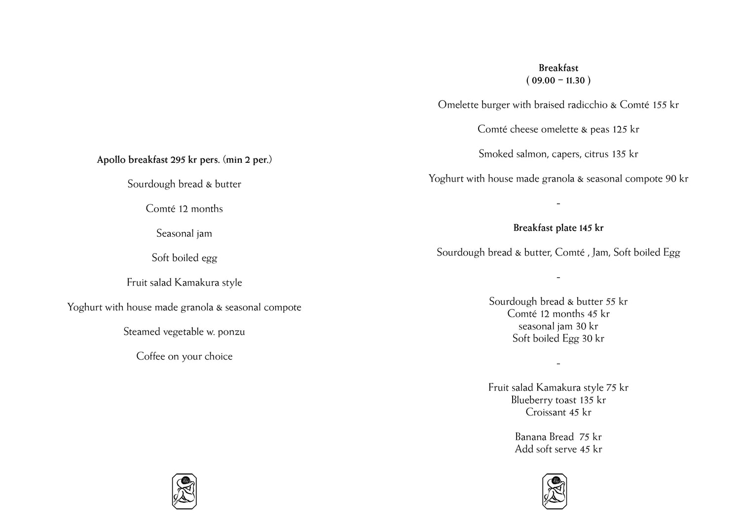 Please note that the menu is subject to change depending on seasons and day-to-day deliveries